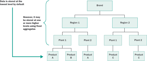 stores data at the lowest possible level of detail, but when you define a fixed aggregate, such as at the Plant 1 or