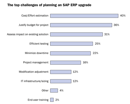 A recent survey by upgrade tool vendor Panaya found that estimating and justifying the budget required for an SAP upgrade were the top two challenges facing respondents looking to upgrade to SAP ERP 6.0 (Figure 1).