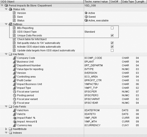 16. Set the Unique Data Records flag. This improves the data-activation speed by leveraging parallel loading. This feature is available in BW 3.x and above. As shown in Figure 2, you can set this flag when you create the ODS, and you can change it at any time using the Change ODS option in transaction code RSA1. Make sure that no duplicate records with the same key are in the data package.