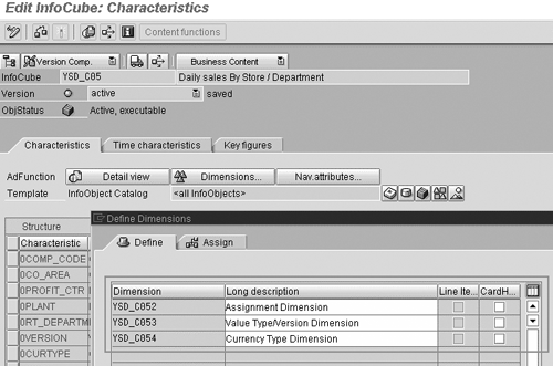 The cardinality flag should be used in conjunction with line-item dimensions. As Figure 3 shows, you can add a cardinality flag to a dimension for a given InfoCube. This flag can be set while creating or changing the InfoCube (in transaction RSA1) using the Define Dimensions option.