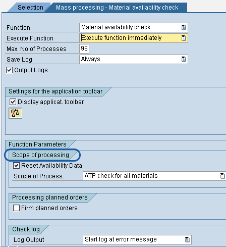 Using the Mass processing-Material availability check tab, you can set the parameters for the mass availability check. Here it is important to consider the options available for Scope of processing, as these determine how the availability check function is executed. Settings that suit requirements of most companies are shown in Figure 2. Choose your required settings by using the drop-down menu options or by checking the appropriate check boxes. You may want to save the settings as a variant by choosing Go to > Variants > Save as Variant option from the menu so that when you next run the transaction you can call your variant by clicking on the get variant icon