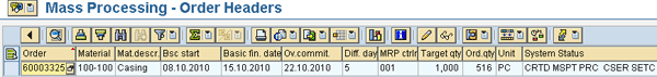 Execute transaction COMAC to see a list of all production orders as per the selection criteria. You then select all orders in the output list using the select all icon