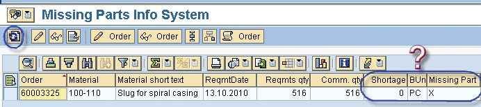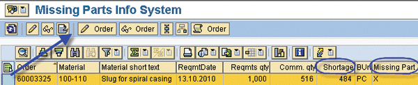 - Step 2. Check for missing parts by running a missing parts report using transaction CO24. You can also use the production order information system (transaction COOIS) Components List to display shortages for orders with MSPT status.