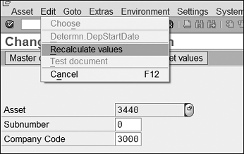 The second way to update an asset’s values is to run the recalculate values program directly from transaction AS02. Follow menu path Edit > Recalculate values and the system updates all values for this individual asset (Figure 5). This is a much quicker way to update the planned values if you only have to do so for a few asset records.