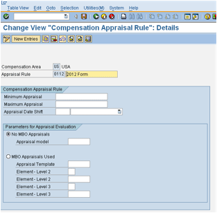 Step 1. In the customizing step Define Appraisal Rules (Figure 5), you can change an employee’s eligibility for a compensation plan based on the employee’s appraisal ratings or a defined minimum or maximum value.