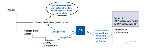 Consider this example: Vendor address data contains a country code field. This field is a lookup from the country table, which includes the country code and country name fields. In this model, the country table contains country code US and country name America (Figure 1). This means that all consuming systems should feature America as the country name for US vendors.