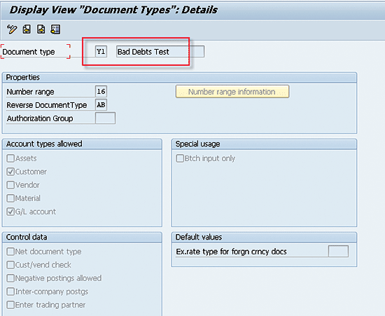 In customization transaction OBA7 (SPRO > Financial Accounting (New) > Financial Accounting Basic Settings (New) > Document > Document Types > Define Document Types for Entry View), create a new document type by copying standard document type DA (e.g., a new custom document type Y1 as shown in Figure 4).