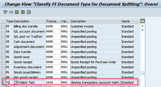 Therefore, the use of document type DA creates a problem in profit center reporting for the customer line items. For normal transactions with document type DA, the SAP system uses an active splitting method, and information does not need to be derived from any previous document. For payments, document type DZ is used. DZ is also configured for passive splitting with business transaction 1010 and variant 0001, but you cannot use DZ because the posting by transaction code F103 is not really a payment. To solve this issue, you need to configure the following customization settings: