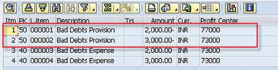 Also during provisioning in transaction F104, the same profit center split is carried forward to the provision account as shown in Figure 7. For an expense account the profit center is derived based on the cost object assignment to the expense account.