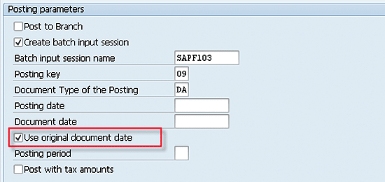 To enable this feature, you need to implement SAP Note 392221 (https://service.sap.com/sap/support/notes/392221). Then a new option (Use original document date) appears on the selection screen of transaction F103 (Figure 8).