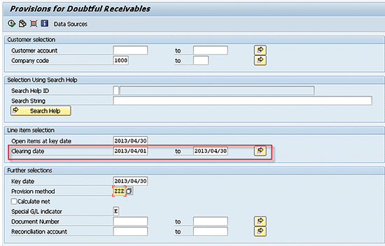 During execution of transaction F104, you can mention the date range for the clearing date, as shown in Figure 9, so that the SAP system reverses the provision only for the items cleared during this period. Make sure that the Clearing date range end date is not beyond the date in the Open items at key date field.