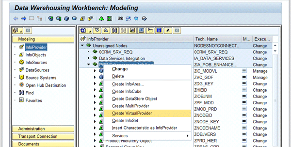 Step 3. Create a virtual InfoProvider based on the new DataSource
