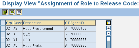 If the workflow option is set to 1, it means that release code X3 workflow is sent to the CEO position and that release code X4 workflow is sent to the CFO position. In the next window, you can see the fixed positions that are assigned from the HCM organizational structure. After you double-click the workflow option, the screen in Figure 3 appears.