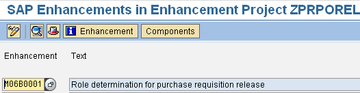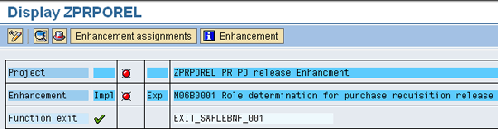 Click the Enhancement assignments button. In the next screen enter the purchase requisition user exit name (Figure 8).