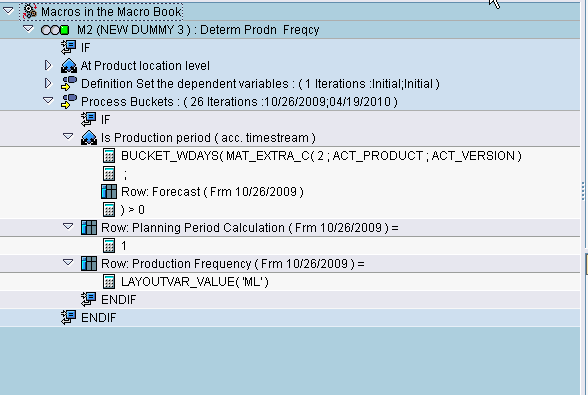 Macro 2 determines how many work days there are in each period based on the location calendar by reading the location master. The macro calculates the bucket week days in a particular time bucket in the planning book (Figure 10).