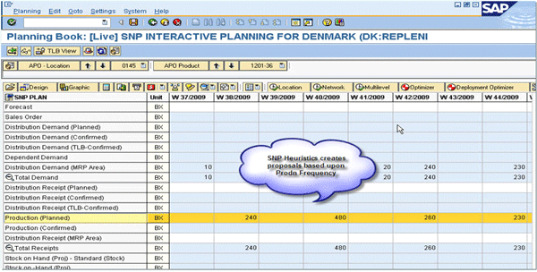 As the client wanted to implement the entire solution within SNP and to use SNP heuristics as the algorithm for planning, I had to change the SNP planning area and SNP planning books to get the right results from SNP heuristics planning.