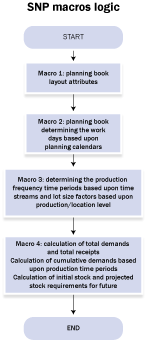 In Macro 3, the step for Time Steam Definition: TS reads the production time frequency from the product master and determines the planning period, and the step Minimum Lot Size: ML determines the minimum lot size for planning purposes (Figure 11). The macro is only executed at the Product/Location level.