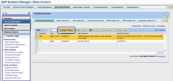 End-to-End Change Analysis helps you identify and analyze what changes have occurred in the systems across your landscape according to various change groups for a particular time frame. A related application is Change Reporting, which allows you to compare the technical configuration (e.g., changes to technical parameters between systems or between time stamps). This allows you to identify what has changed and revert to a previous value if necessary.