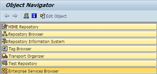 Next you populate the container ID in the XML structure generated from SAP PI. Identify the service initially using transaction code SPROXY to enter the Enterprise Service Repository shown in Figure 10. Select the Enterprise Services Browser option so that you can choose among the various services available.