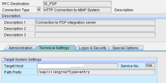 You now need to use the SAP TM–SAP ECC? ERP invoice integration scenario in the Enterprise Services Repository. This is because you need to transfer the settlement document from SAP TM to SAP ECC to create an invoice verification process. You first set up a Remote Function Call (RFC) connection using transaction code BD54 (Figure 9). Specify the connection type as H as it is an ABAP-type connection. Specify the system where the SAP PI system needs to be interconnected. In my example it is SAP ECC as I specified that system in the Logon & Security tab.