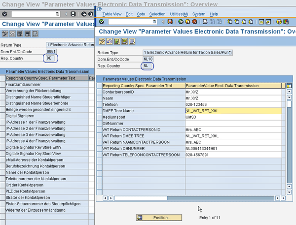 The electronic communication with authorities is the general information that you need to send to the tax authorities. This information is country specific. In Figure 1 you can see two screenprints: one for a German company and one for a Dutch company. As you can see, the information for Germany includes more parameters than the information for the Netherlands.