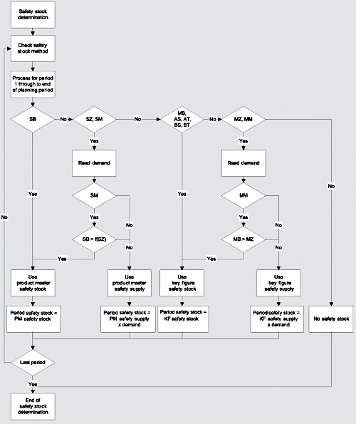 - If MM, then compare the results of methods MB and MZ and copy the greater of the two results into the key figure Safety Stock.