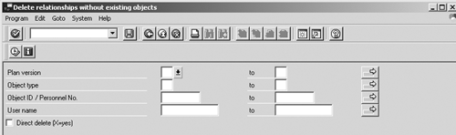 Once you have identified the objects that contain invalid relationships, you can run program RHCHECKRELATIONS to remove the relationships that you were unable to remove through normal object maintenance. The following steps show you how to use this program.