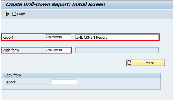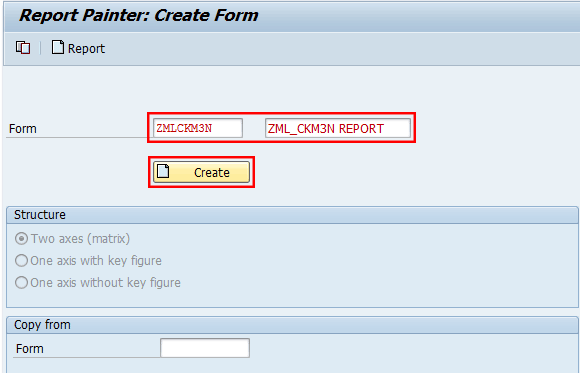 As an example, create a form in which the structure looks like the screen that displays after you execute transaction code CKM3N. To do this, execute transaction code KKML4. Enter a Form name and description as shown in Figure 7 and click the Create button.