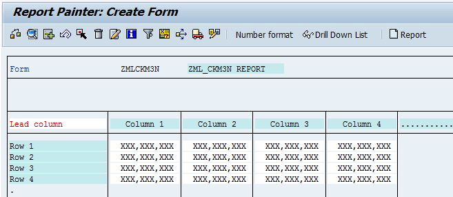 To create a report, execute transaction code KKML1. In the screen that opens, enter a report name and a form name as shown in Figure 16. Then press Enter to go to the screen shown in Figure 17.