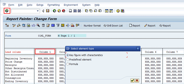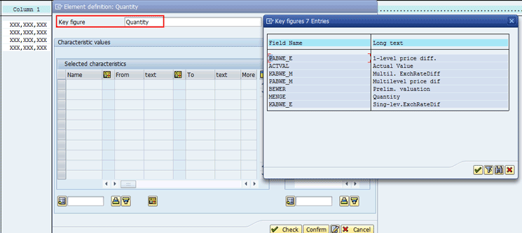 One by one select all the key figures for each separate column, click the Check button, and then click the Confirm button. The final structure looks like the screen shown in Figure 14.