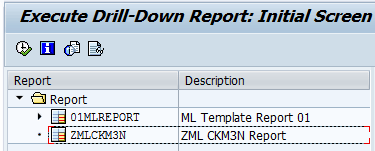 To run a report, execute transaction code KKML0.This action opens the screen shown in Figure 19 in which you can view all the reports created.