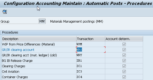 G/L accounts configuration for the GR/IR transaction (WRX)