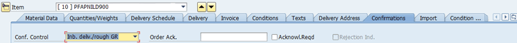 However, first you have to maintain standard configuration to activate rough GR functionality. Afterward, you need to maintain the Confirmation Control key at the PO line item level as rough GR or Inb. delv./rough GR (inbound delivery/rough GR) as shown in Figure 27.