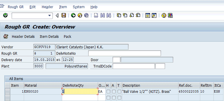 The process of creating a rough GR is beyond the scope of this article. For information on creating a rough goods receipt,