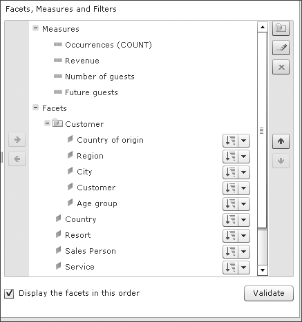 10. Check the box for Display the facets in this order option as shown in Figure 7. In addition to the option to group dimensions in the form of facet groups, you can also define the default sorting for each dimension object in your information space (Figure 8).