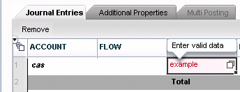 The system validates what you type into fields and highlights the information in red, providing a message if the data is incorrect. For example, if you type an invalid account, the system displays a message (Figure 10) indicating that the text entered is not a valid account.