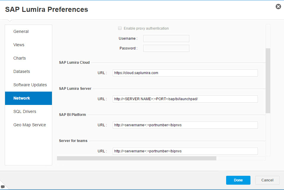 2. In SAP Lumira desktop, select File > Preferences, and the screen in Figure 14 opens.
