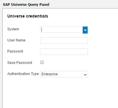 4. In the screen that opens (Figure 16) enter the details for your SAP BusinessObjects BI system.