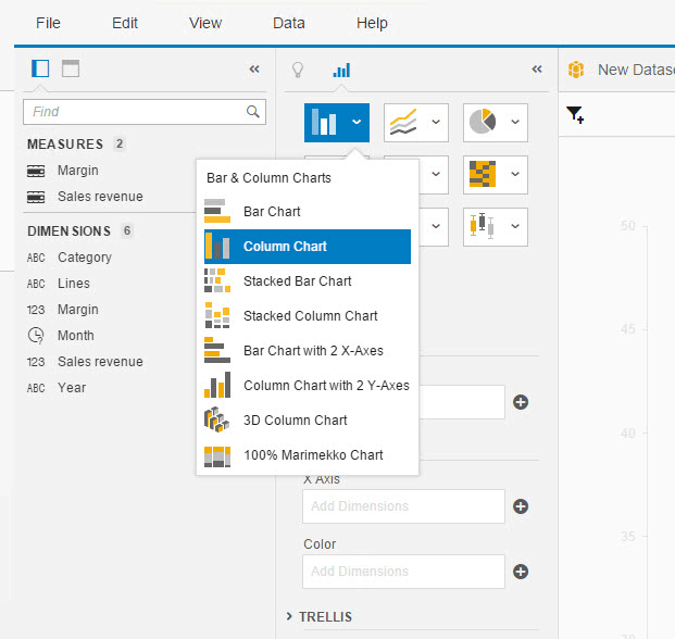 8. In the screen that opens (Figure 18), select the Column Chart option in the visualize area.