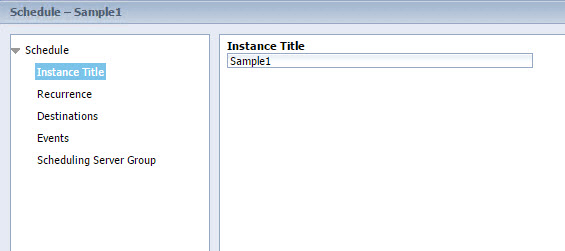 6. Under Schedule on the left, select Instance Title, and the screen on the right of the figure expands. Enter a name for the output of the scheduling in the field.