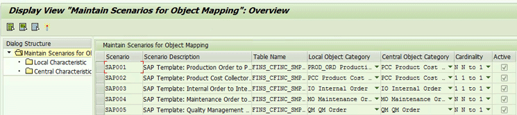 Standard scenarios provided by SAP for Cost Object Mapping configuration