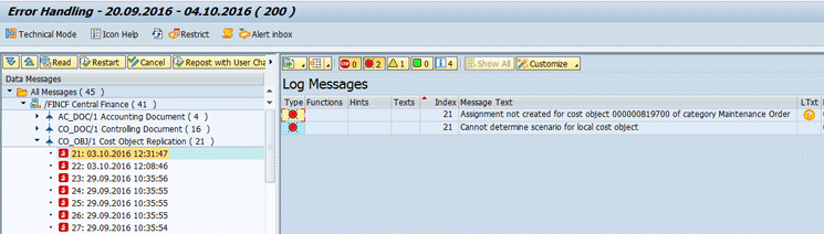 - The replication of master data such as cost centers, G/L accounts, and profit centers must be complete. Short-lived master data such as internal orders and product cost collectors are created based on the settings maintained in the cost object mapping framework.