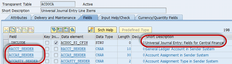 Table ACDOCA stores the G/L account and real cost object information of the source system. Execute transaction code SE11. In the screen the system displays (not shown), enter ACDOCA in the Transparent Table field and then click the display icon. This action displays the screen shown in Figure 8.