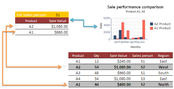 This approach meets the goal of filtering more than one record from a data source. However, if the source data is huge, the target data set consumes more space than the source. A massive effort is required to write formulas in all the target data set cells. With no other alternative available, use this approach.