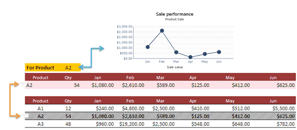 - Define dynamic variation of charts elements (X and Y axes) or tables (rows and columns). This is important when various data matrices are mapped to a single chart or table visual component and are controlled by the selector visual component.