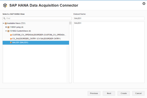 Figure 6 opens. It is populated with all the SAP HANA views available for your account.