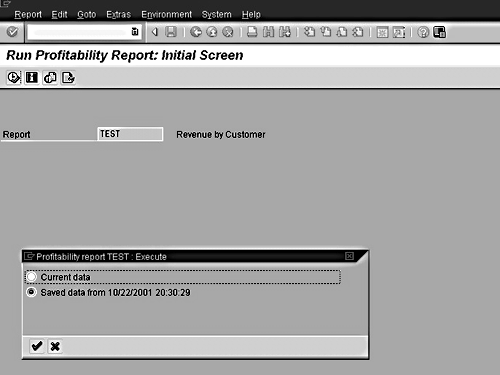 The dialog box in Figure 1 is similar to what your end users will see anytime they now use their normal method for running their CO-PA reports. In other words, the end users do not need to learn any new navigation steps or paths. They simply need to respond to the pop-up prompt that the CO-PA report will automatically provide.