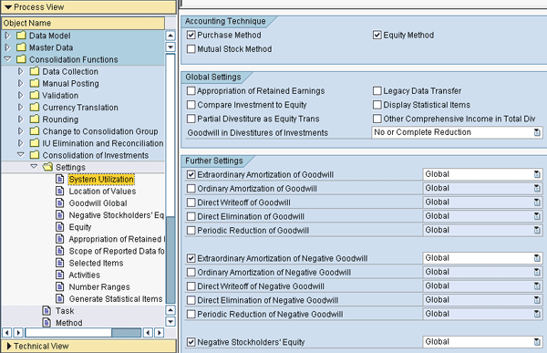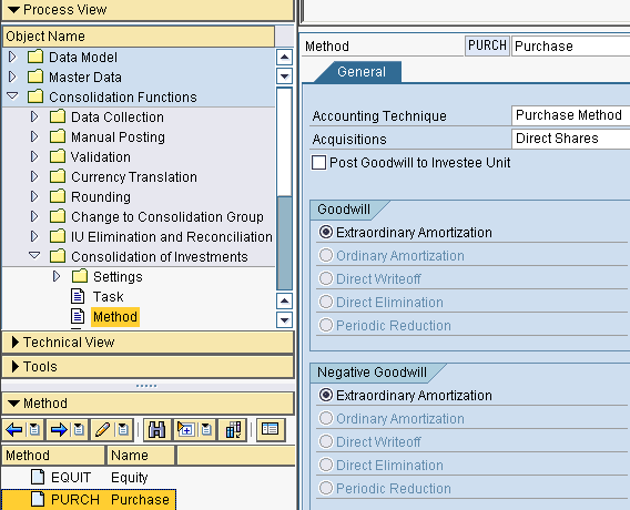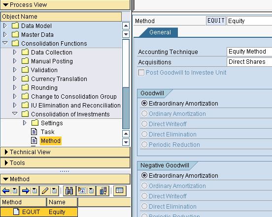In this method, you need to configure COI to activate the accounting techniques logic. This is needed for the consolidation reporting logic, which is discussed in my article “Reporting with SEM-BCS and EC-CS”, to determine whether to include records in the output based on the accounting technique assignment.