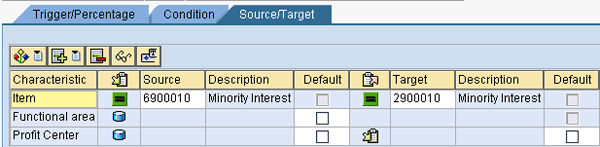 The next tab in the method definition is the Source/Target definition. Click this tab and define the source as the minority interest income statement item and define the target as the minority interest balance sheet item. Include subassignments as needed (Figure 6).