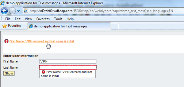 Messages are important in Web Dynpro applications to show the exact status of a user action. With the help of messages, users can then take the appropriate action. For example, a warning or error message can be raised to validate user input. If the screen has a text input field for the customer or vendor number and the user should input a value, but the value doesn’t exist in the master table of the SAP system, the Web Dynpro application can raise an error to alert the user to the issue.